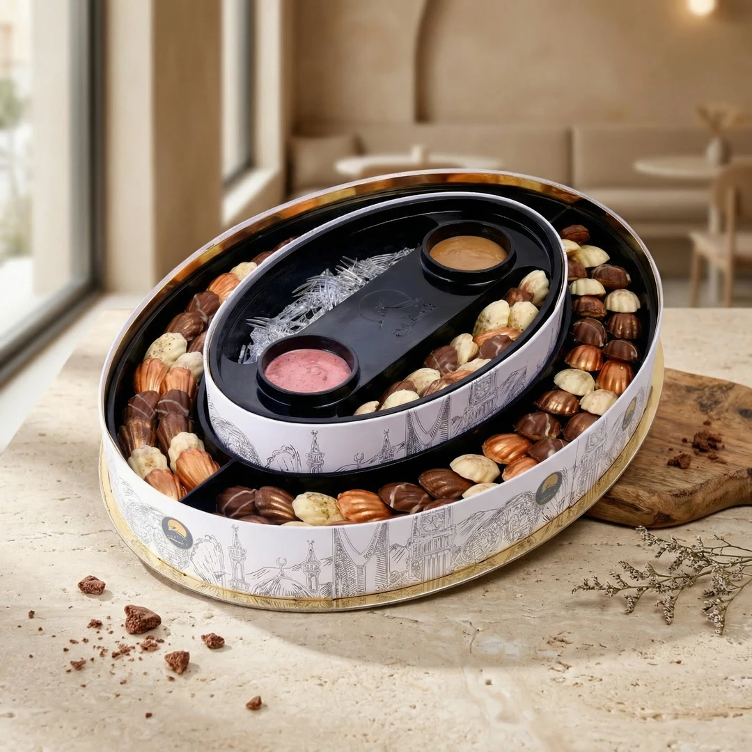 مكس مادلين محضّرة بعناية، تجمع بين النكهات الكلاسيكية والمبتكرة، مثالية لضيافة القهوة والمناسبات.